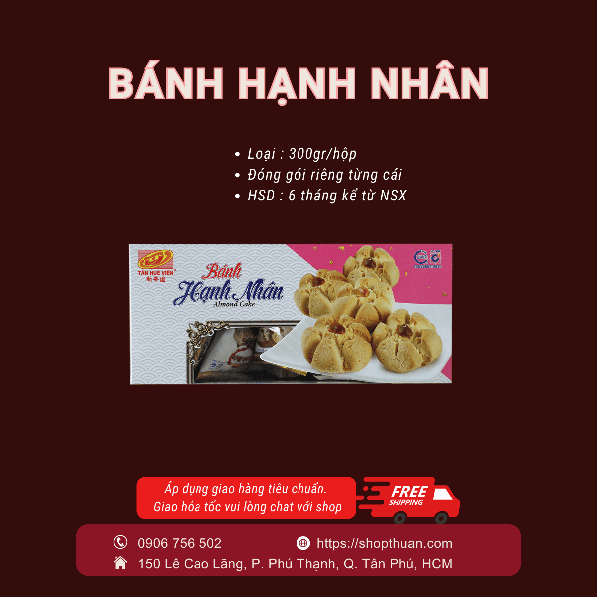 Bánh hộp nhân Tân Huê Viên 300g ( hộp giấy)