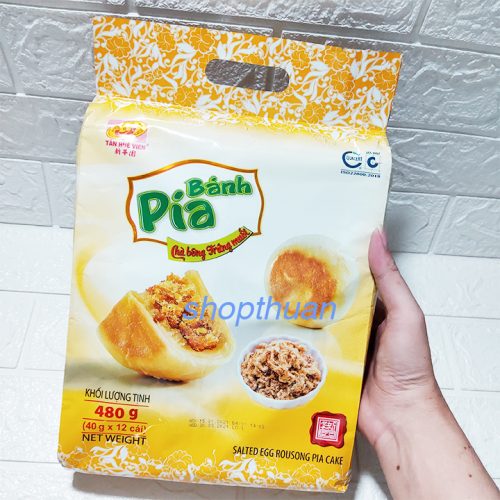 Bánh pía chà bông trứng muối 480g ( 12 cái ) – Tân Huê Viên